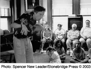 Tim Van Egmond weaves together tales, tunes, and songs – from the rib-tickling to the spine-tingling to the heart-warming. MUSIC flows in and around his stories through his singing and playing on a wide variety of traditional instruments, including hammered and mountain dulcimers, guitar, conga drum, and limberjack (a dancing wooden puppet that taps out a rhythm on a paddleboard). His dramatic use of VOICE and MOVEMENT brings stories vividly to life, and his gift of encouraging PARTICIPATION makes for high-spirited and engaging programs. Each program is tailored to meet special needs and interests of sponsors and participants.
